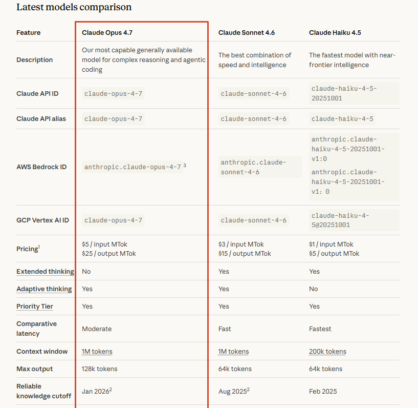 模型 ID:claude-opus-4-7-20260416(具体以 Anthropic 官方文档为准)