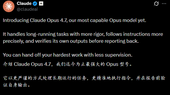 Anthropic 昨天发了 Opus 4.7。