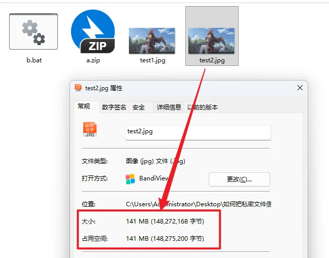 也就是在test1.jpg这个图片文件的末尾追加这个a.zip压缩包数据,并且不会修改图片本身的结构!