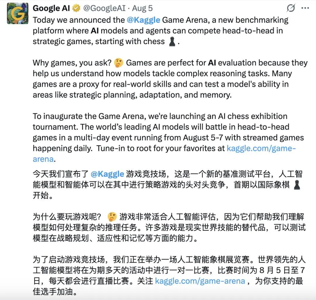 谷歌发起这场国际象棋大赛,旨在测试AI的“涌现”能力。首日对决后,o3和o4-mini、DeepSeek R1等选手纷纷登场,结果揭晓——