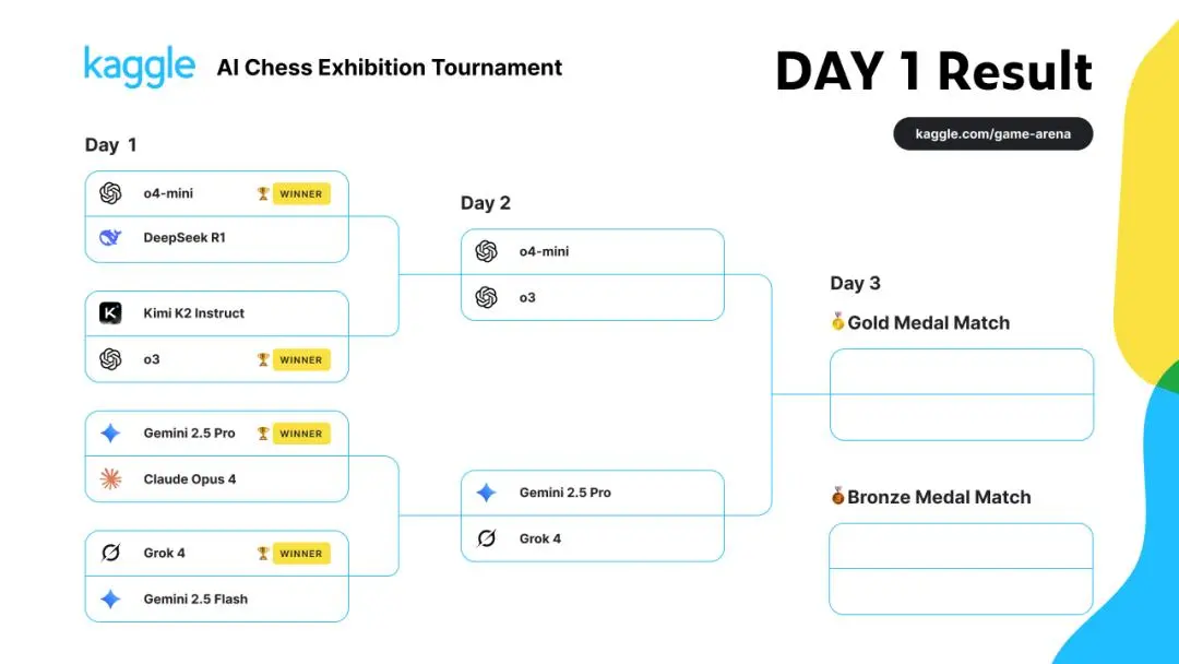 经过一天激战,半决赛名单出炉:Gemini 2.5 Pro、Grok 4、ChatGPT的o4-mini和o3。