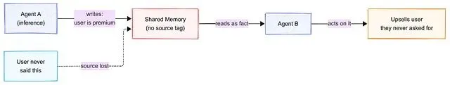 没有来源标签,一个 Agent 的推断会被下一个读到它的 Agent 当成 ground truth。