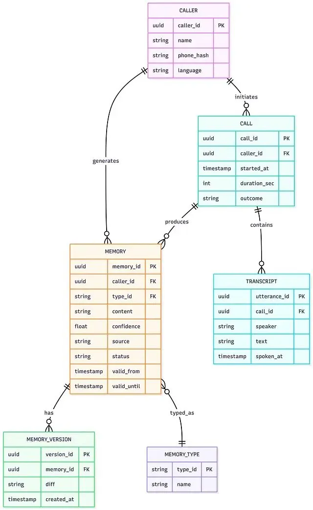 示例的场景是一名客户打进客服线路。语音 Agent 必须按姓名问候来电者,并带上相关上下文——过往工单、账户状态、首选语言——响应预算 200ms 以内,对话才自然。没有记忆,来电者要把一切重讲一遍;有了记忆,Agent 从工单中途接手,30 秒搞定,而不是 5 分钟。