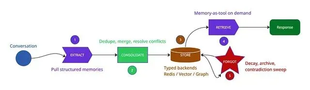 五阶段记忆流水线——每个生产框架都实现了它的某种变体。