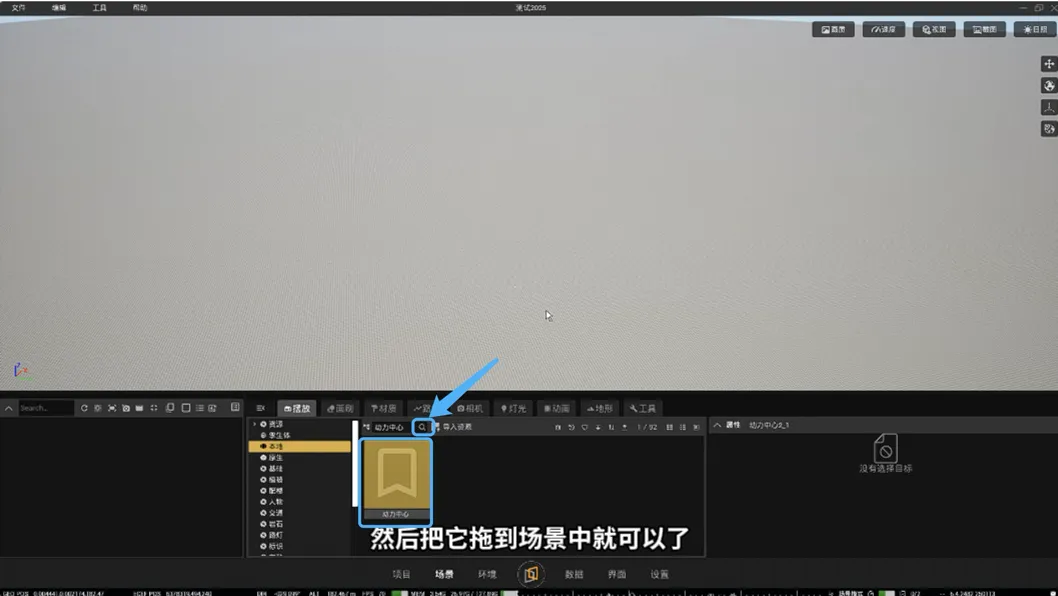 3. 选中,拖到场景中(资源比较多的话需要找一找,可以点击【导入资源】按钮左侧的放大镜,输入名称搜索)