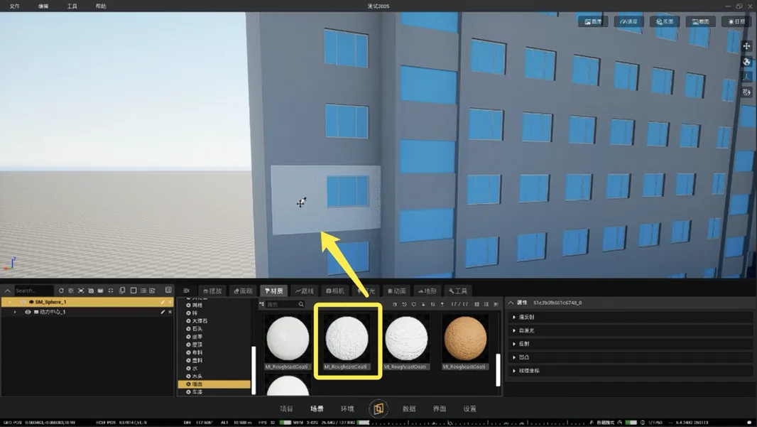 5. 替换材质:【场景】-【材质】-选择你想要的材质,按住拖拽到场景中即可。
