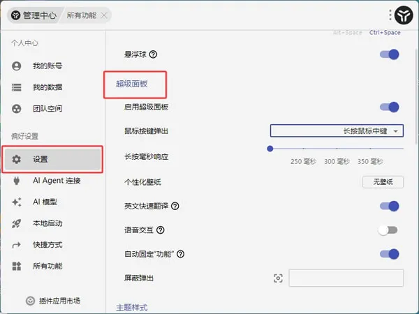超级面板是uTools的特色功能,鼠标中键点击(或自定义快捷键)呼出圆形菜单,快速访问常用插件。可以根据使用频率自定义超级面板的布局。