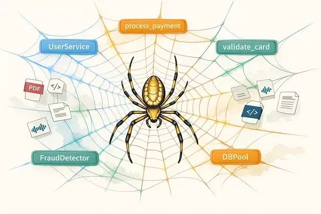 业界的标准答案是 RAG:把文件切块、嵌入、丢进向量库,查询时取 top-K 块。对散文类文档,RAG 工作得很好——语义相似度本身就是一个靠谱的检索信号。但对代码就不一样了:函数和它的调用者之间的关系是结构性的,不是语义性的。"process_payment 调用 validate_card"这种事实不存在于嵌入空间里,它存在于调用图里。
