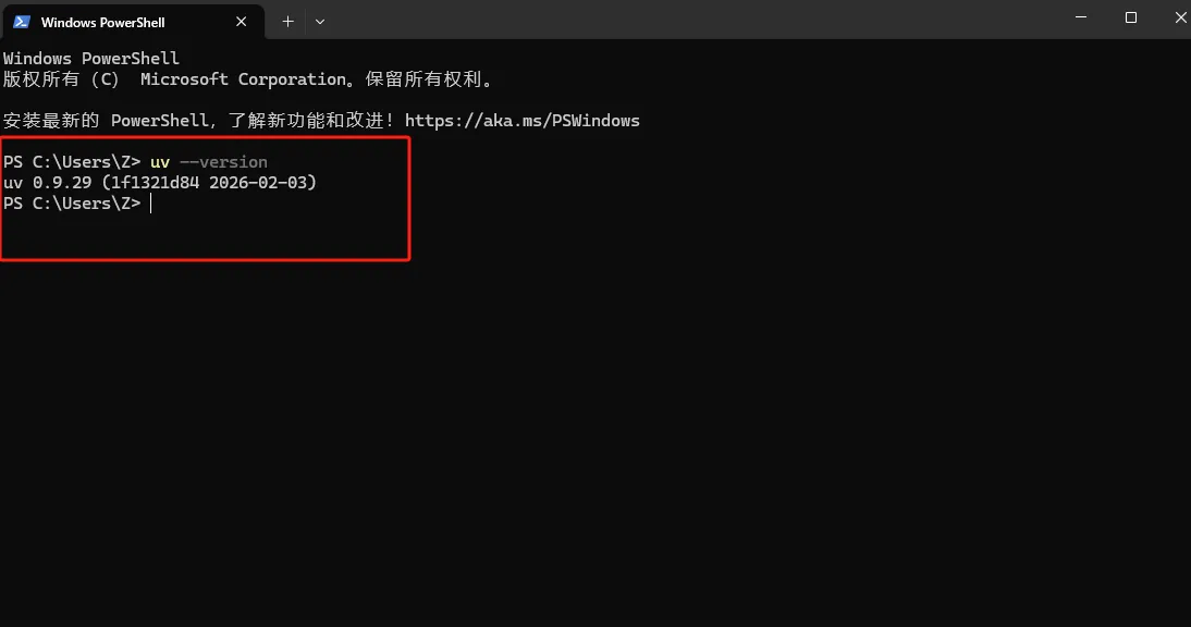 重启终端后,执行以下命令,校验uv和uvx是否正常工作: