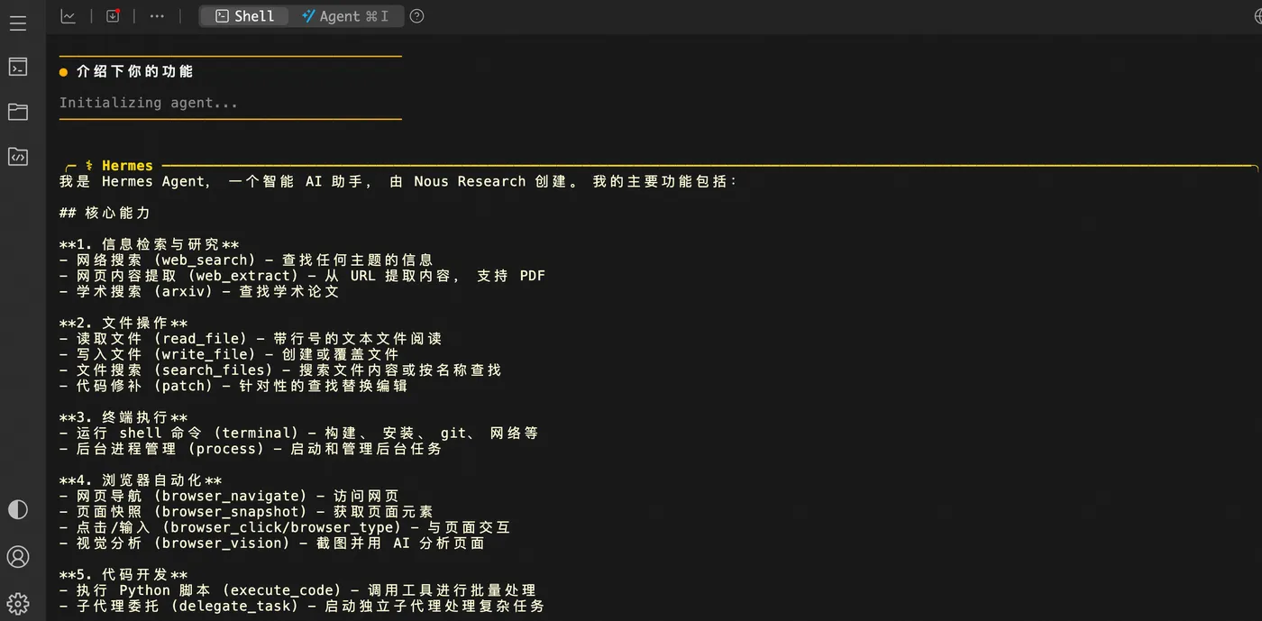 5、执行命令与 HermesAgent 进行交互。