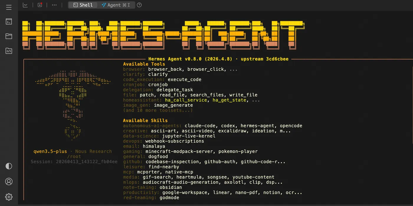 Hermes Agent 是由 Nous Research 开发的一款自我进化型智能助手。它通过内置的学习循环不断积累经验,创造并优化技能,在多轮对话中逐步构建用户画像,并实现跨对话的持久记忆。配合智能用户界面与多平台集成支持,Hermes Agent 能为用户提供从本地开发到云端部署的全方位、持续进化的智能辅助体验。