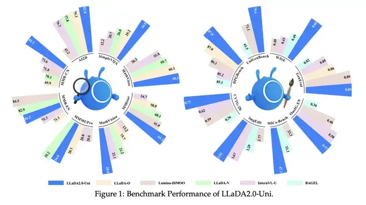 核心突破:不同于常规的自回归路径,LLaDA2.0-Uni 采用全离散扩散建模,彻底打破了文本单向生成与图像全局扩散之间的底层范式壁垒,为构建视觉-语言原生统一的多模态架构提供了全新的解法。