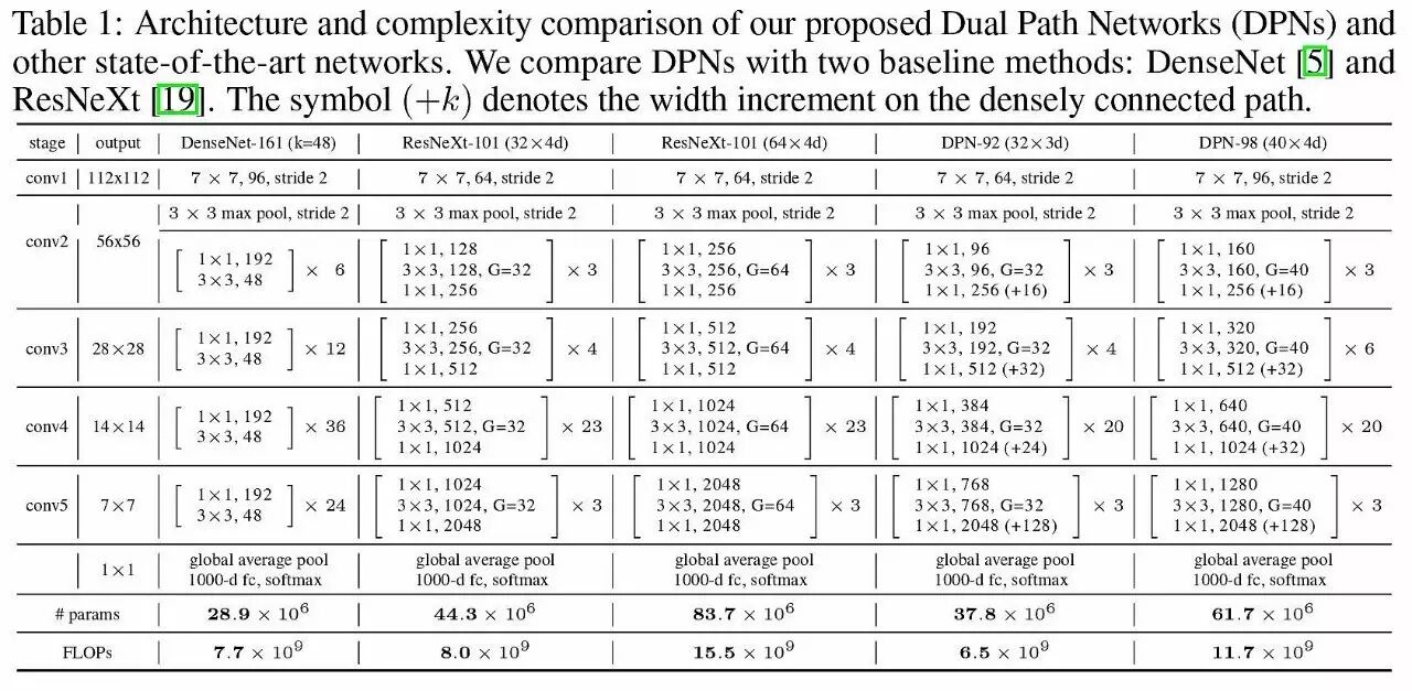 在 DPN 这篇文章中,作者分析探讨了现在最受欢迎的两种网络结构,并提出了其独特的见解:认为 ResNet 是 DenseNet 在参数跨层共享时的特例。基于这一结论,作者进一步提出了一类高性能、低资源占用的全新网络拓补结构 Dual Path Networks,DPN 有效地融合了现有网络,实现了优势互补,其性能在“图像识别”、“图像检测”和“图像分割”这三大任务中均得到了验证,各项指标得到了显著提升。相信近期将能在更多的工作和报道中看到双通道网络的身影。