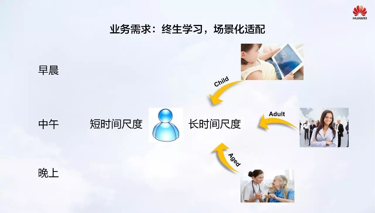第三,智能终端的终生学习。终生学习并不是从用户接入开始到用户离开你的服务为止。类似人类从小孩到中年到老年,整个过程都能感知和认知,智能终端能不能在整个事件的生命周期内持续提供服务?比如从深圳来北京的一趟飞机,航班信息非常多,能不能决定一下选哪个?万一有一些意外,能不能提供一个备选方案?包括出行,包括酒店,包括航班,一系列信息其实都是连续的,行程任务很明确,所有的一切是不是能够替我在周期内完成?AI 整个能力部署之后,建立整个学习引擎之后,应该能够提供一个场景化选择适配的能力,能够知道我的用户的场景变化,以最佳的方式来完成我的任务,这里面是持续性的学习过程,不是单次的适应过程。但是本身来讲它是巨大的挑战,如果从完整事件的高度看,这需要聚合各式各样的 AI 能力拼成完整的系统,而这个系统本身的驻留产生终生学习的效果。通过成功完成每次任务,通过各式各样人的群体测试的叠加,它就会越来越智能。这个智能系统才是可持续发展的系统,不是单次型的智能系统,部署完、训练完就完了。这是从消费者解决方案的角度来看,AI 领域能够带来的非常大的变革性的场景化的需求。