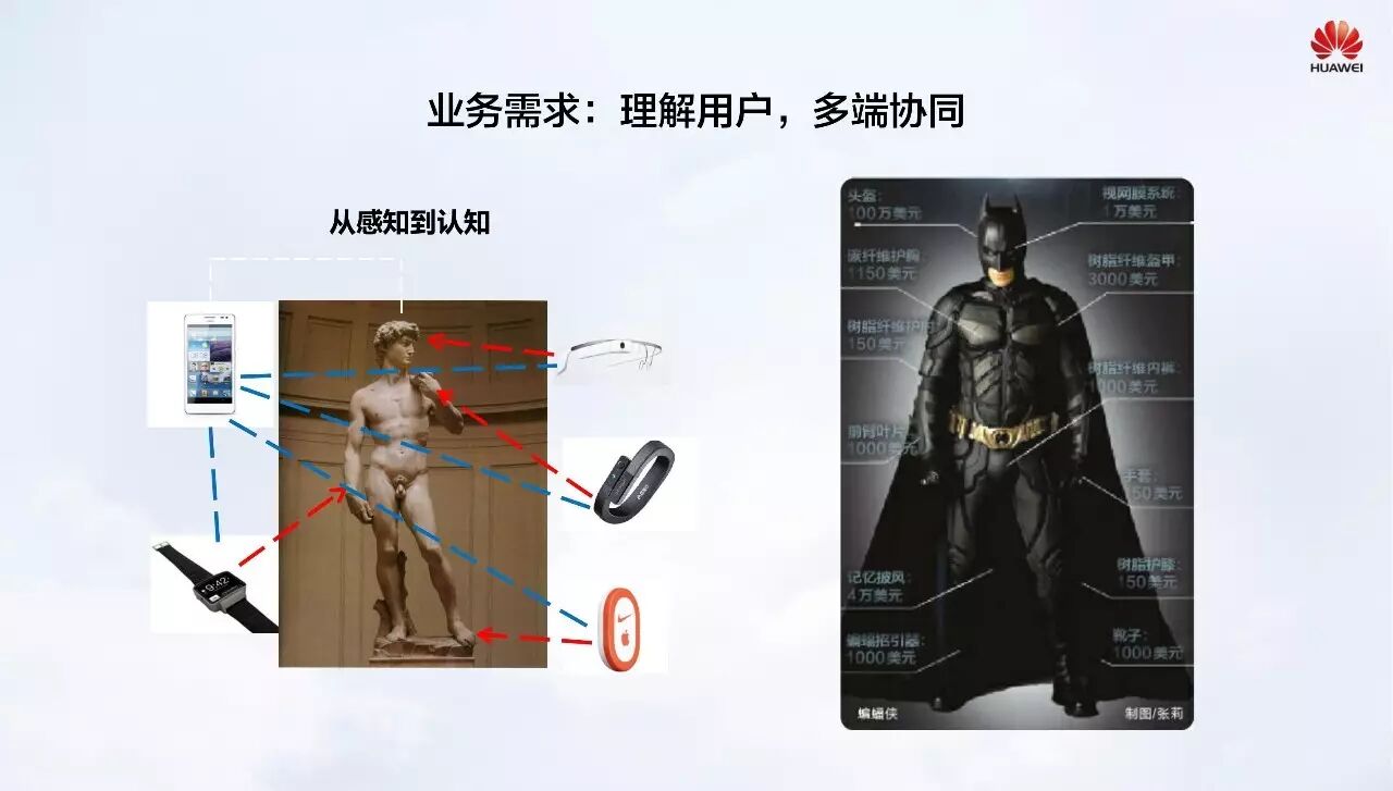 第一是端侧智能,加盟 CBG (华为消费者 BG)之前,我梦想有一个超级强大的云,一个在云端持续处理的超级强大的大脑。但是我们去年发布 Magic 手机的时候,有一个客户跟我提,用你们的手机正看着一个视频,突然跳出来一个推荐,说苏宁上卖的某个东西比京东上便宜 10 块钱,这是系统不停在分析用户本身的业务需求,客户建议说,你们要控制一下这个。