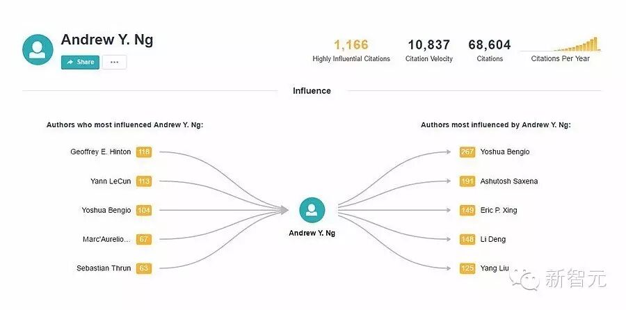 使用Semantic Scholar搜索吴恩达(Andrew Ng)的结果。吴恩达在 Semantic Scholar 的影响力排名第二。来源:semanticscholar.org