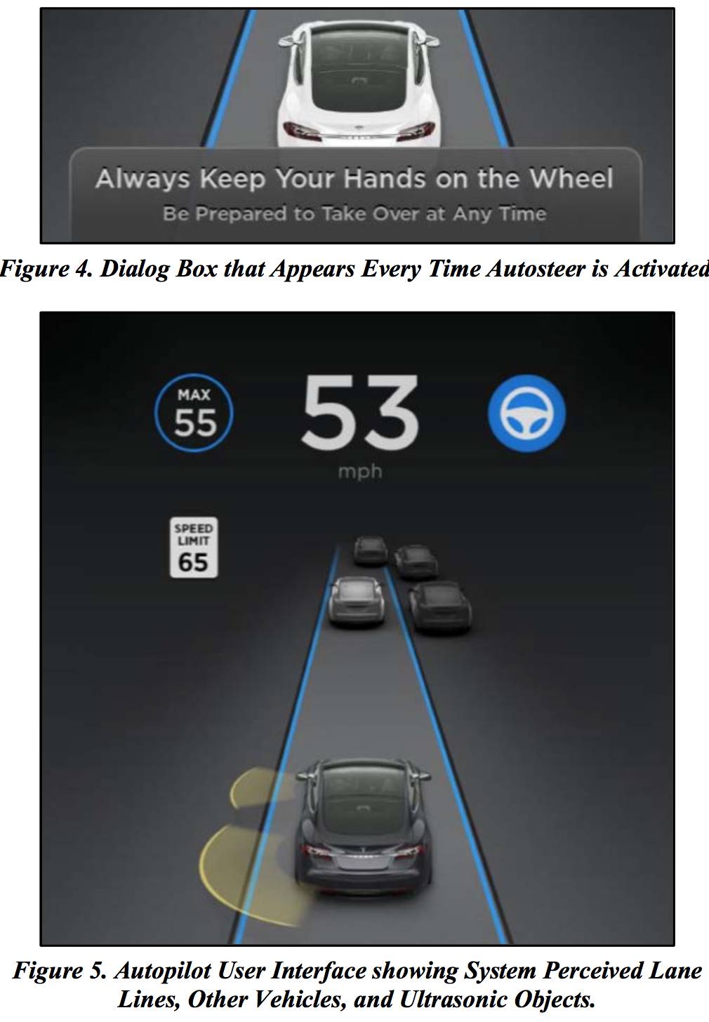 从失事的 Model S 上获得的数据显示:1)发生碰撞时,该车处于由Autopilot 控制的状态;2)碰撞过程中,自动紧急制动系统(AEB)没有提供任何警告或者强制自动制动;3)司机没有采取任何制动、转向或其他行动来避免碰撞;4)司机最后被记录的车内操作行为是将巡航控制系统的设定速度提升到74英里每小时,此时离撞车不到两分钟。车祸发生在一个晴朗的日子,且道路条件为无湿滑。2016年6月21日,NHTSA 成立了一个专门调查小组,对发生车祸的车辆和道路环境进行研究。NHTSA的调查发现,至少在车祸发生前7秒以上,货柜车是处在特斯拉司机的视野范围内的。2016年6月28日,NHTSA 启动了 PE16-007 调查项目,以“检验发生车祸时,车内任意自动驾驶系统的设计和性能状况”。