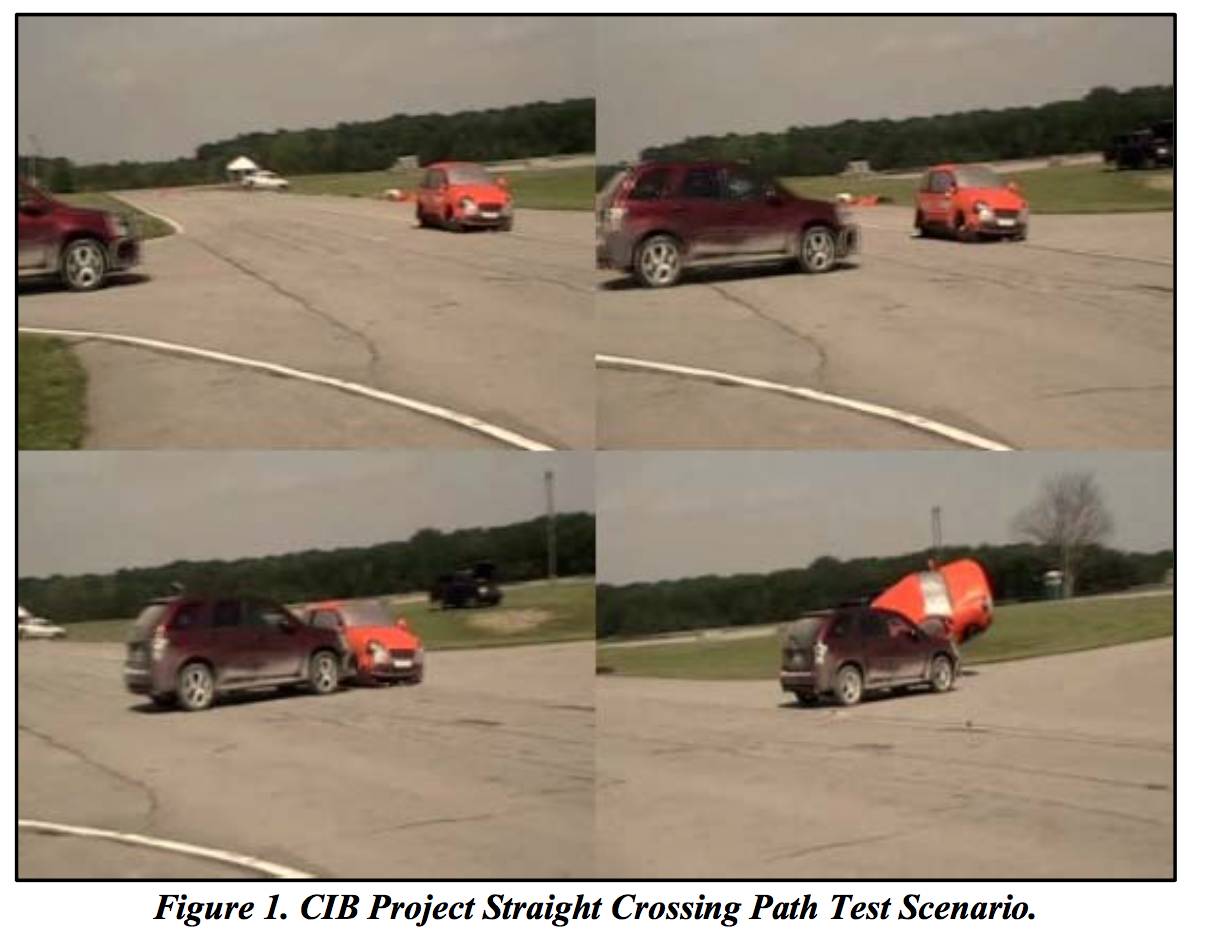 图1显示了作为 CIB 项目的一部分——直交叉路径测试。该报告提供了关于测试结果的以下评估:“碰撞前出现在视野中的目标的时间有限,这对系统的良好表现和采用CIB系统是一个非常大的挑战。通常,目标总是在撞击之前很晚才被识别或根本不被识别。