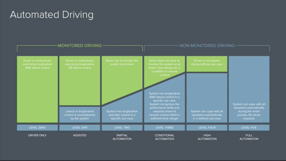 美国汽车工程师协会提出了自动驾驶的6个等级的分类系统: