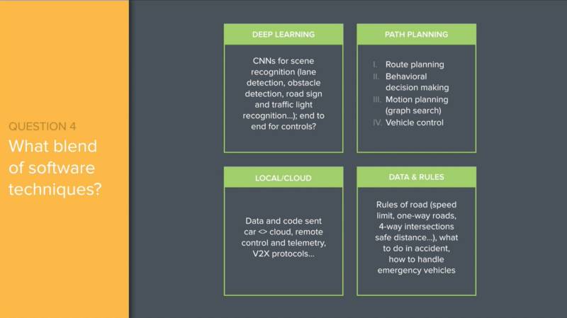 那么,我们需要特意为自主车辆设计单独的预计算地图(precomputed maps)吗?答案显然是肯定的,但谁来做,做的成本是多少?以及在这个空间是否有垄断的机会?这是个还没有人问过的有趣问题。因为在不远的将来我们就可能到达 Level 5,到那时你已经没有选择,没法选择自己去驾驶车辆——你不得不完全依赖驱动自动驾驶汽车的基础架构。