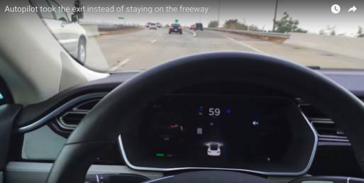 在AutoPilot开启状态时,用户被假设应该随时手扶方向盘,然而现实情况他们往往做不到。就匝道口这个例子来讲,是会有问题的。随手到Youtube上翻一下,就能找到很多用户分享AutoPilot在匝道口偏向辅路行驶的情况。