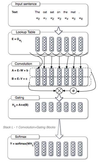 统计学意义的语言模型评估的是词语序列的概率分布。这导致了倾向于根据正在处理的词语对下一个词语出现的概率进行建模的方法。目前,语言建模的主要方法都是基于递归神经网络的。Facebook AI 研究院 提出了一个卷积的方法,来为语言建模。他们引入了一个新的门机制(gating mechanism),能够释放梯度传播,同时比Oord 等人在2016年提出的 LSTM 风格的 gating 性能上要好很多,并且还更加简单。