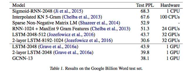 结果显示,我们的门卷积神经网络在WikiText-103 上打破了记录,在更大型的谷歌Billion Word 基准中,单一GPU上的模型训练表现也优于其他几个强大的 LSTM 模型。
