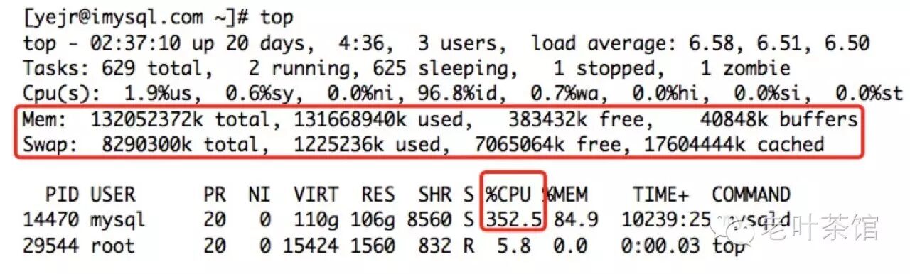 先执行top看系统负载,看看高不高,并确认瓶颈是否在mysqld进程:
