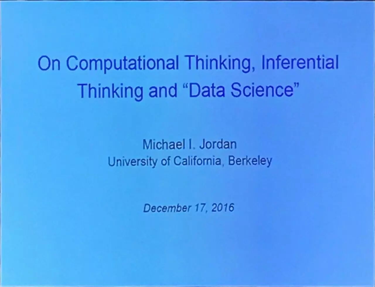 聘请仪式结束后,Michael I. Jordan 现场作了题为《On Computational Thinking, Inferential Thinking and Data Science》的报告分享。