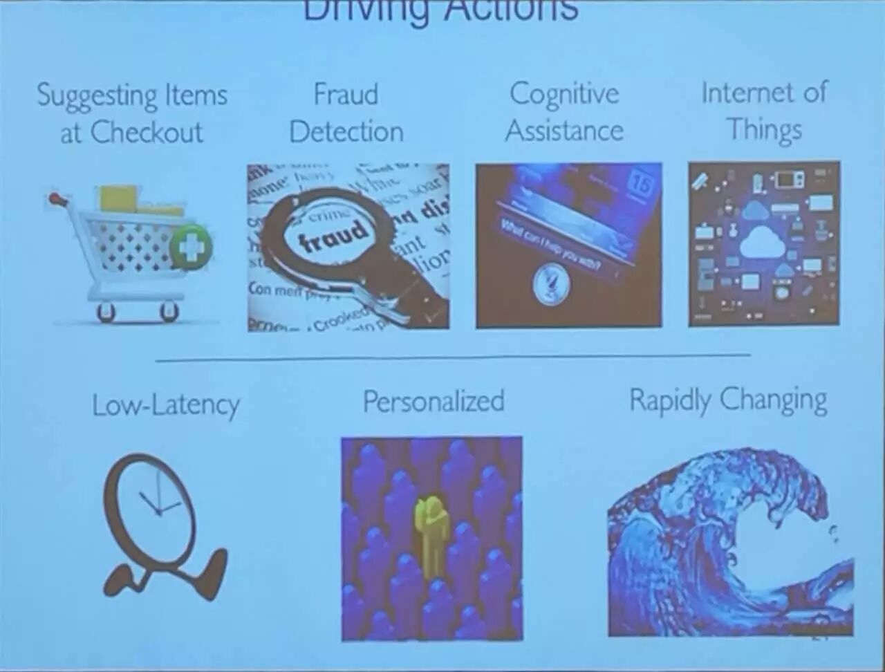 应用:商品检测、欺诈检测、认知助手、物联网。