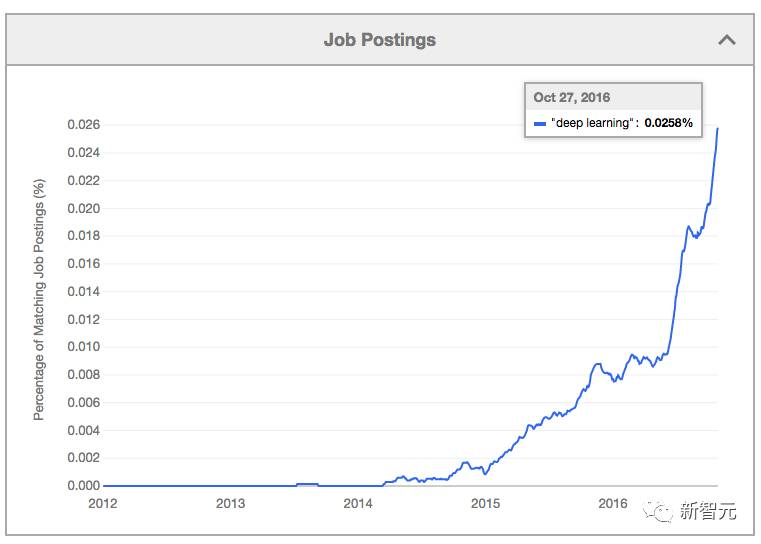 从2015年开始,市场对深度学习人才的需求直线上涨,2016年下半年开始更是以超大幅度上涨。另外,2015年开始,我们也看到了大量的学术界顶尖人才流向产业界。