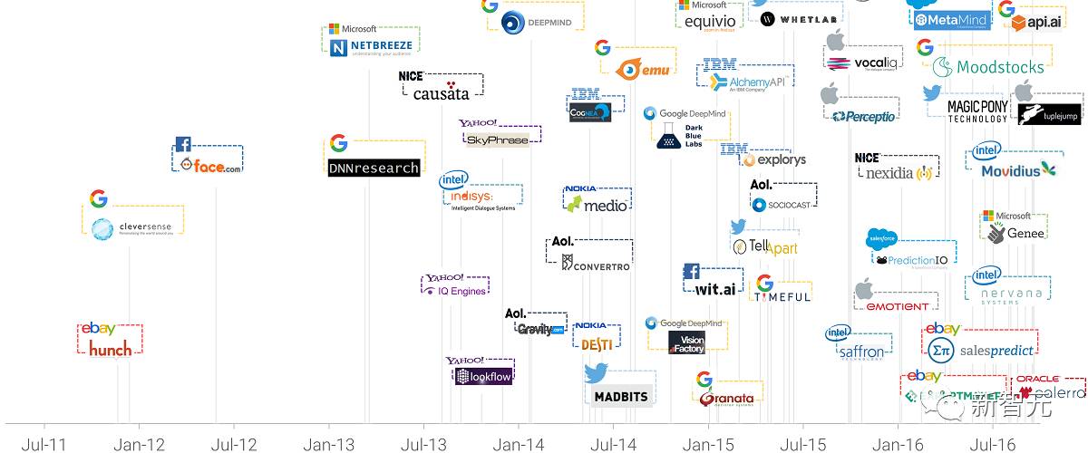 2016年内在AI领域发生了一些非常高调的收购案,包括6月份公开的推特(Twitter)花费1.5亿美金收购Magic Pony Technology,后者是一家专注视觉处理(visual processing)相关的机器学习(machine learning)算法技术公司。英特尔于今年8月以超过4以美元的金额收购 Nervana 等等。