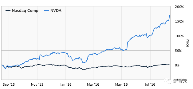 人工智能特别是深度学习的发展,极大地推动了英伟达的股价的上涨。从2015年开始,英伟达的股价一直都高于纳斯达克平均水平。