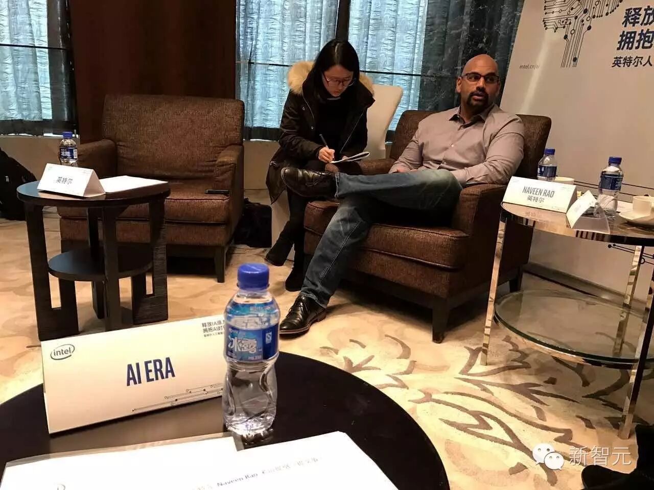新智元编辑闻菲(右)专访英特尔数据中心事业部副总裁、人工智能解决方案部门总经理、Nervana Systems 联合创始人兼CEO Naveen Rao。