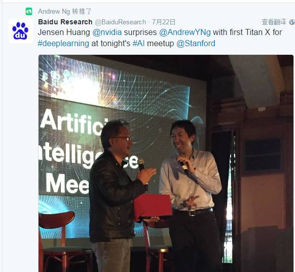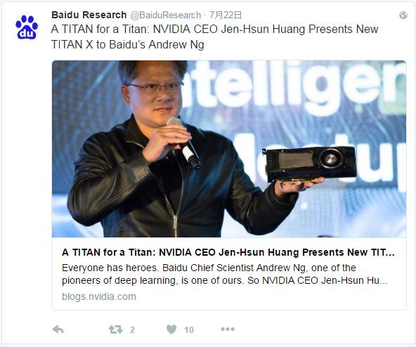 正因此,英伟达CEO黄仁勋将第一台英伟达深度学习处理器Titan X亲手赠与了吴恩达。