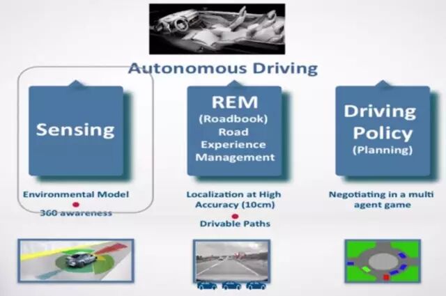 Mobileye在自动驾驶的布局分为三个部分,可以认为是三个阶段:感知、高精地图和驾驶决策。