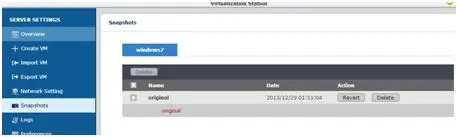 Virtualization Station还提供快照的功能,可让使用者随时备份,记录当下的使用状态与环境,至于什么是快照呢?大家可以想像是常见的备份软件ghost,在将电脑快照后,可随时恢复当时的使用设定,算是相当方便。