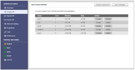 这里有预先设置好的各种虚拟机模板。懒人们可以直接根据自己需要创建一个,非常方便有木有?