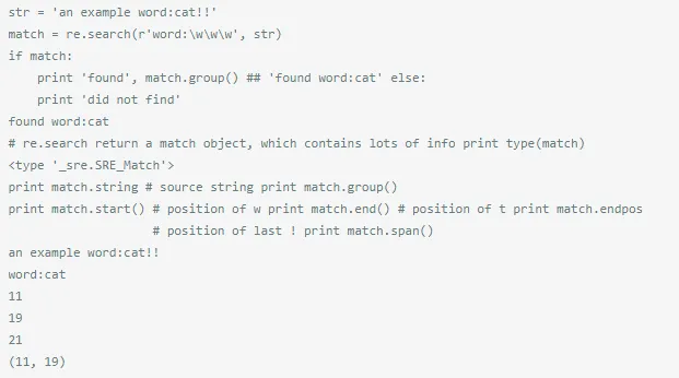 经常用match = re.search(pat, str)的形式。因为有可能匹配不到,所以re.search()后面一般用if statement。