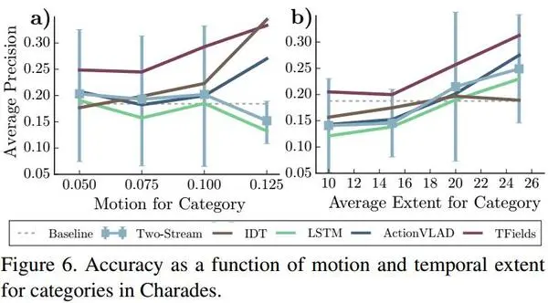 该部分则主要讨论了现有的模型在学习行为分类的过程中到底学到了什么。这部分采用了几种目前比较主流的行为分类算法,以Charades数据集为主进行了实验分析。