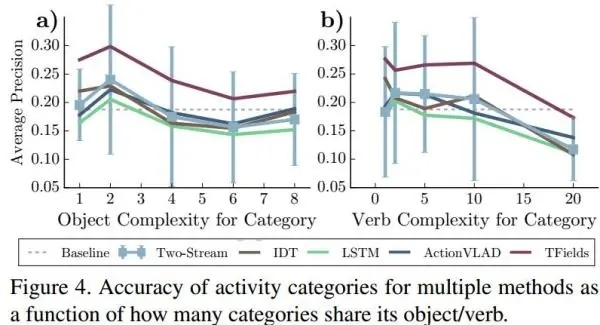 该文召集了一些志愿者,在Charades数据集上进行了一些人类学习实验。实验结果表明人类对于动词比起名词更容易感到混淆。进一步的实验也表明了单独的动词不能够对动作进行足够清晰的描述。因此,动词和名词的组合在对动作的描述上是更加清晰的。