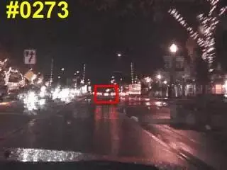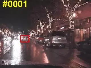 物体在视频中与相似背景的混杂(目标汽车的尾灯和迎面而来汽车的头灯)