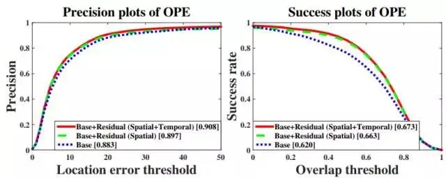 同时,在引入了时空域的残差式结构后,跟踪效果逐步提升。