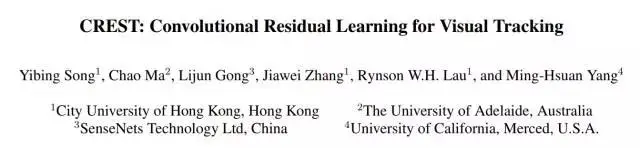 “CREST”(Convolutional RESidual learning for visual Tracking),也有勇攀高峰之意