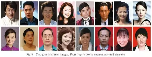上文中,我们使用CNN研究通过面部图像是否可推断人格特征和智力水平。回归实验和分类实验结果表明:特定人格特征可由面部图像准确推断。为进一步验证实验结果,本文又建立了一个新的数据集,包括两组从互联网下载的正面照,照片中人物表情自然放松。一组为明星,一组为教师。本文构建了相应模型展开实验,试图回答具有相似社会行为的个体是否具备相似人格特征这一问题。之前建立的“面相数据集”(physiognomy dataset)用于训练神经网络,这一新数据集用于测试。