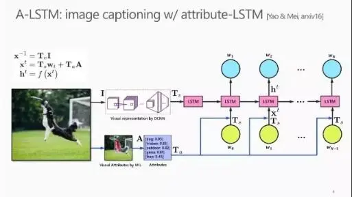 Image Captioning方面的工作可以总结为“Image Captioning with X”,其中的 X 可以是 Visual Attention, Visual Attributes, Entity Recognition, Dense Caption 和 Reinforcement Learning等模块。IBM 最近的一篇 CVPR2017文章就在 Image Captioning 任务中使用了增强学习,通过在目标函数中加入 reward optimize function 来实现这一功能。