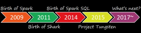 Spark SQL的发展史概述(讲师PPT下载)来自美国Databricks公司的范文臣首先讲述了Spark SQL的发展史,范文臣同时也是Apache Spark PMC member,主导 Spark SQL 一些主要功能的设计和研发,定期审计项目代码质量等。现场,他将Spark SQL过去的发展分为四个阶段: