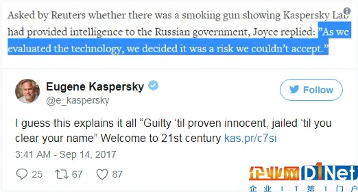 虽然我未能洞察俄政府与卡巴斯基之间的往来,但过去几年,我们总能不时听到‘某家美国企业与政府情报机构合作’的消息,那为何这在其它国家就无法发生呢?