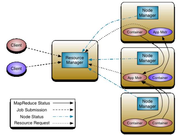 同时,客户端通过ResourceManager监控应用的状态或者是直接查询ApplicationMaster(如果支持这个服务的话),如有需要客户端也可以通过ApplicationClientProtocol#forceKillApplication杀掉应用的进程。