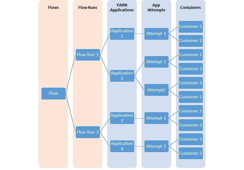 在许多情况下,用户对YARN应用程序的“流”或逻辑组级别的信息感兴趣。启动一组或一系列YARN应用程序以完成逻辑应用程序是更常见的。时间轴服务v.2明确支持流的概念。此外,它支持在流级别聚合。